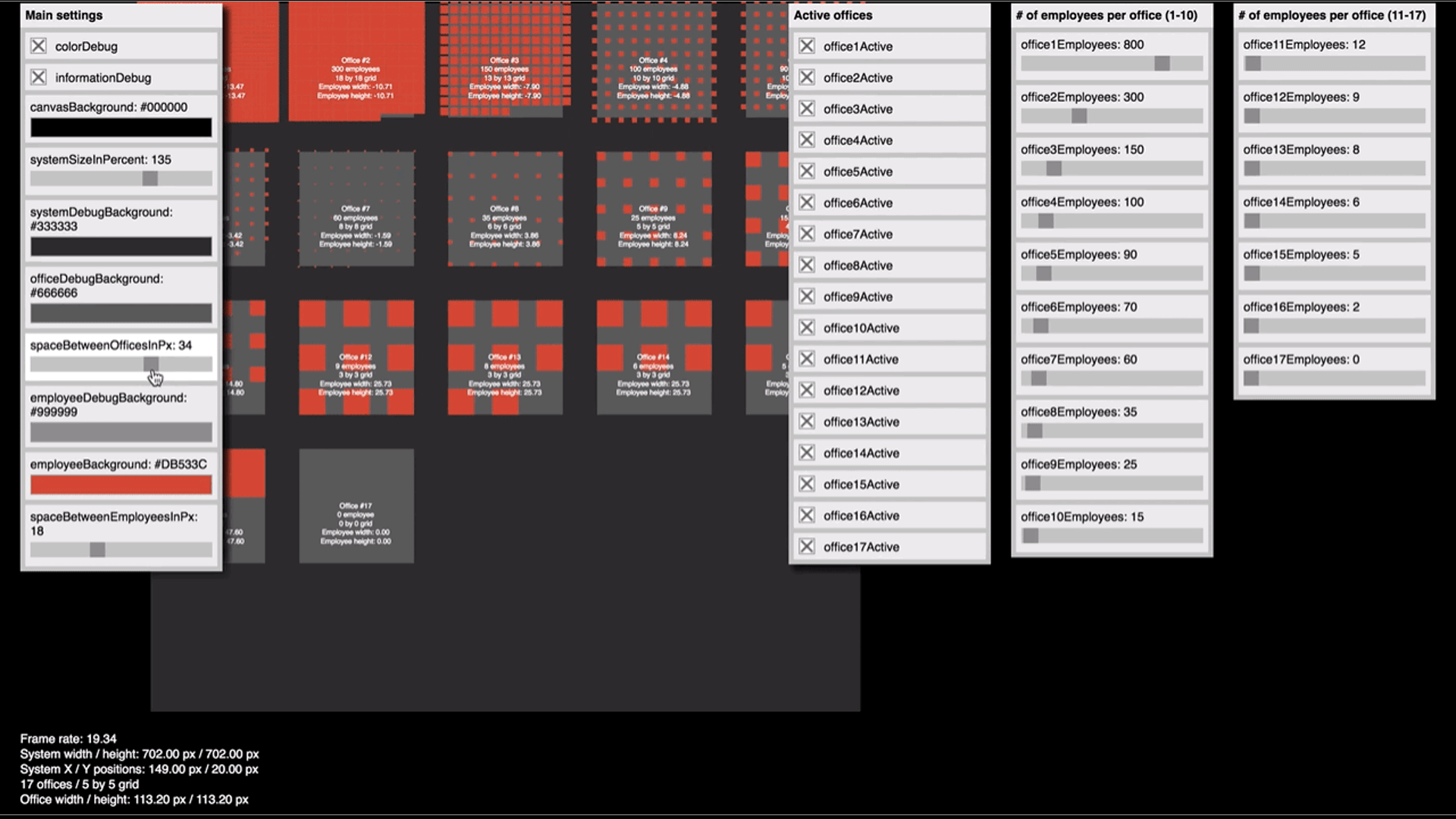 Prototype built using P5.JS to simulate data scenarios and the impact of the generative brand visual idea.